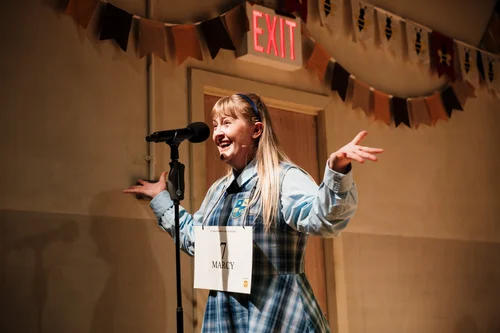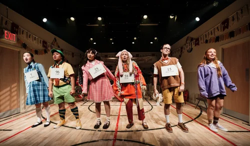 ‘All the elements of the production, directed by Ali Pidsley, come together to create a rich and striking aesthetic. The opening image is of two corpses, face down in the dirt, on top of a burial mound made up of gold concentric circles (designed by Lizzy Leech). The corpses are breathing and glittering gently. The corpses stand up and become Antigone and Ismene, dressed in sequins and grubby taffeta – princesses with an edge. When Antigone ventures off the mound – both gilded cage and refuge for the girls – to bury Eteocles, she heaves up a sheet of metal, cutting the circle in two. It is a striking visual metaphor for the growing rift between the sisters and, with Ismene crouched on one side talking to Antigone through the wall, anticipates Antigone’s sentence: to be imprisoned in a cave until she starves to death.’ Hannah Greenstreet, Exeunt.